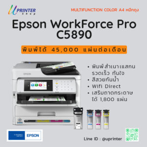 เครื่องปริ้นสำนักงาน 4 สี กันน้ำ หมึกถุง หน้ากว้าง A4 เพิ่มถาดกระดาษได้ 1,800 แผ่น Epson WorkForce Pro C5890
