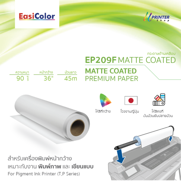 EasiColor EP209F 36″ กระดาษ Premium Matte Coated Paper 90แกรม 45เมตร