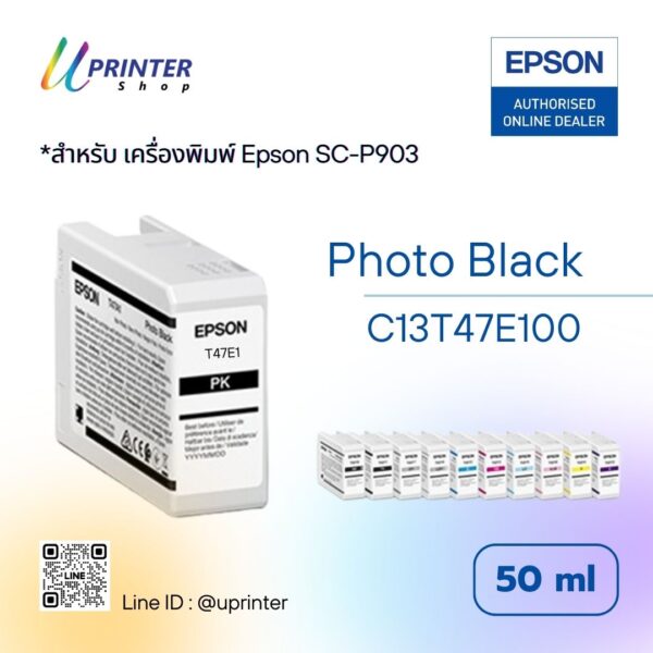 EPSON หมึกตลับรหัส C13T47E100 PHOTO BLACK (IC 50ML) หมึกแท้ สำหรับเครื่องพิมพ์รุ่น Epson SureColor SC-P903 เป็นหมึก UltraChrome Pro10 ให้ช่วงสีดำที่เข้มและลึกที่สุด โทนสีกว้างขึ้น